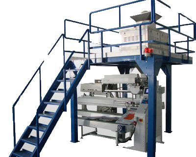 大袋全自動(dòng)上袋定量包裝機(jī):可以自動(dòng)上袋、定量、裝袋、封口,對(duì)5-50公斤的粉劑及顆粒進(jìn)行自動(dòng)上袋定量包裝。